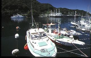 ヨットと漁船と