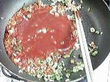 再びフライパンに火をつけ、沸騰したら、揚げた伊勢海老を加えてソースをからめるように煮込む。