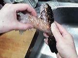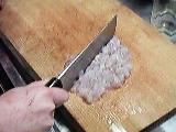 身(頭の中のあった物も合わせて)をブツ切りにし、まな板の上で包丁で叩き、ねばりが出るまでミンチにする。