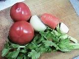 にんじん、たまねぎ、セロリ、にんにくは、粗いみじん切り、トマトはさいの目切りにしておく。