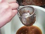 殻を取り除いて、スープをこす。(うちはこし器が無いので味噌こしでやってます)
