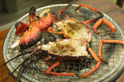 当店での伊勢エビの食べ方(海鮮焼き)