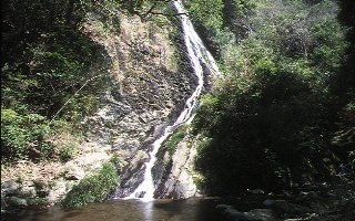 安良里の山側「カニ料理 栄」の奥に神洞(じんぼら)の滝が有る。