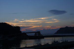 宇久須港が一望でき夕暮れ時に運搬船の出入りが有ると素晴らしいです。