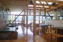 店舗です。正面と二階部分です。真ん中の写真は階段からベランダを見たもの右端は逆にベランダから店内を見た物です。