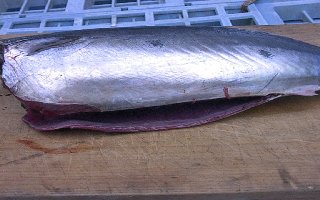 手で身だけ外し皮を こすり落とす。 小骨も外した方が良いが 身が崩れるようなら そのままにする。 |
