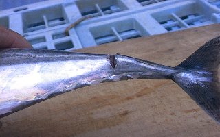 頭をとりはらわたを 取り除く。 その後きれいに 洗い血などを 取り除く 頭は捨てないで一緒に 茹でて干すと良い 肥料になる。 |